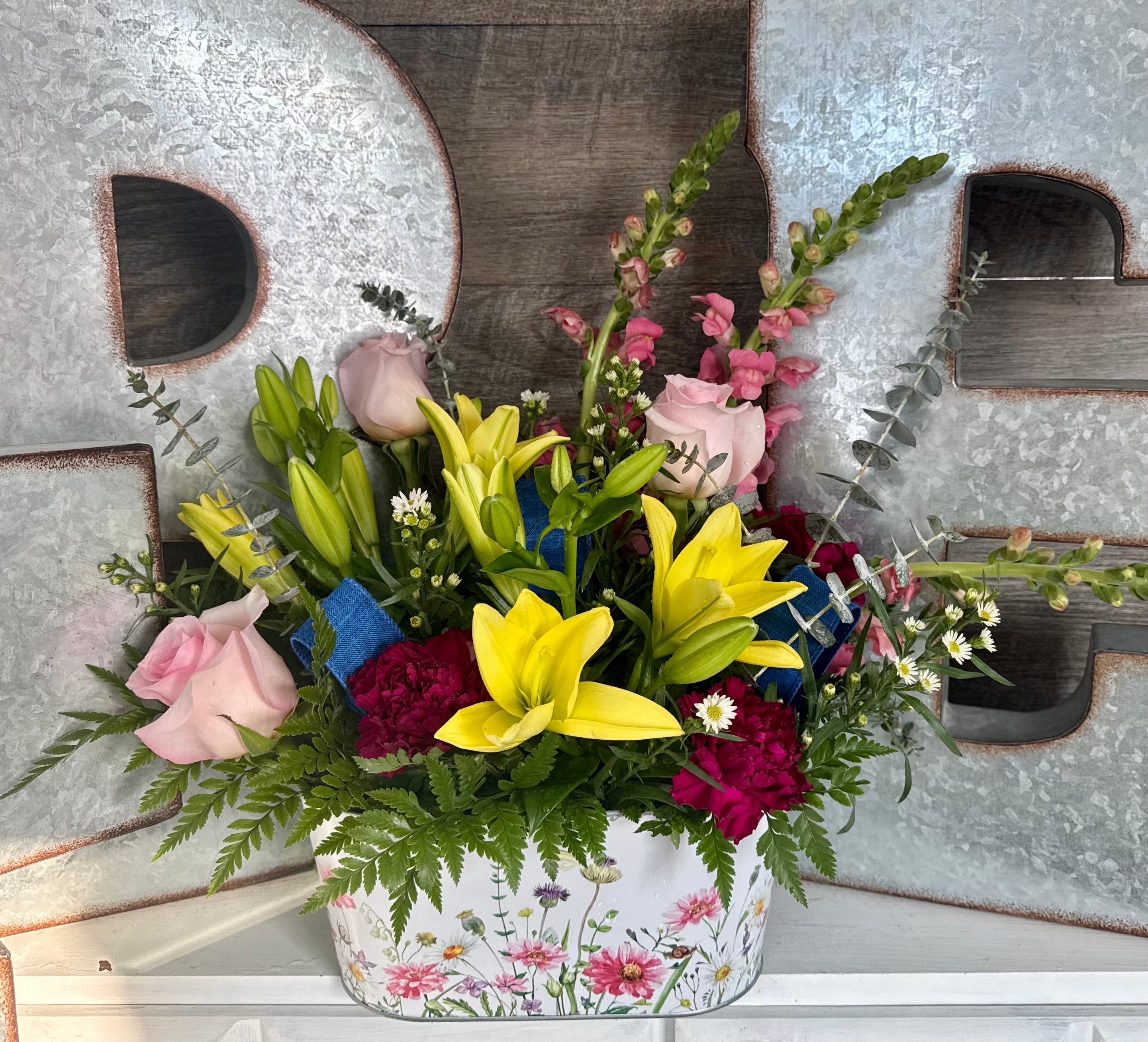 Say hello to The Kaycee, and get ready to capture their heart with its unique variety of tin colors and fresh-cut, seasonal flowers! This gorgeous bouquet is sure to make someone smile. Perfect for any occasion!