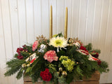 Santa Clause statue may vary, bow design may vary, floral substitutions may occur.