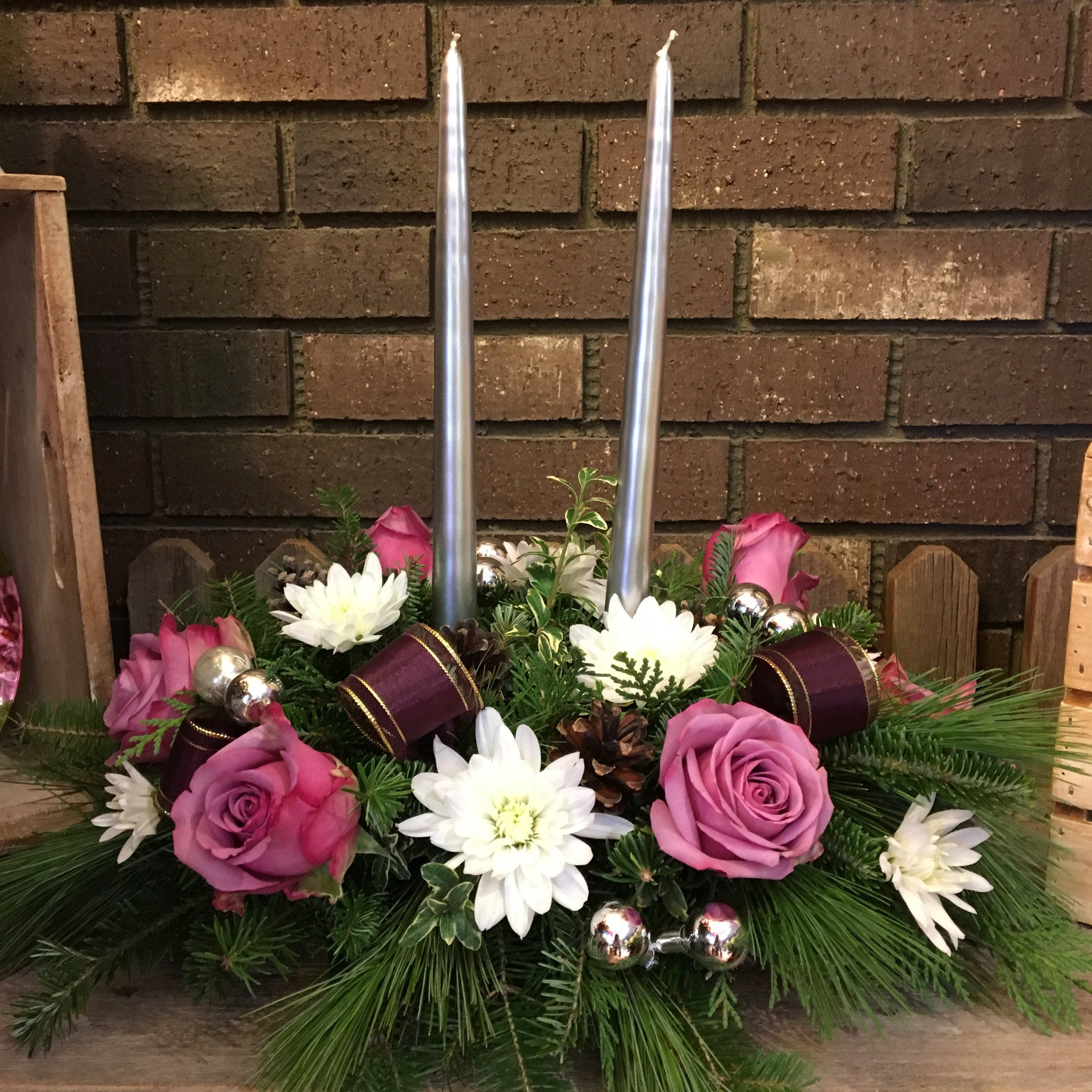 *Substitutions for the candle color, ribbon design, and florals may vary. Purples and coordinating coloring theme using the freshest floral available